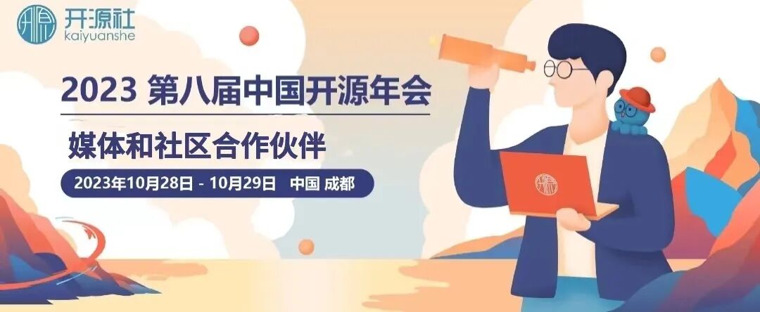 一年一度的开源大会,COSCon'23 第八届中国开源年会,将于10月28~29日,在四川成都市高新区菁蓉汇召开!本次大会的主题是:“开源:川流不息、山海相映”!如往年一样,作为中国最大的非营利、厂商中立、公益性质的社区联盟,开源社在每一届中国开源年会中,都希望尽可能地连接更多的社区合作伙伴,今年,我们也诚挚地邀请所有在中国活跃的开源技术社区伙伴们加入我们的年会社区和媒体的合作方。