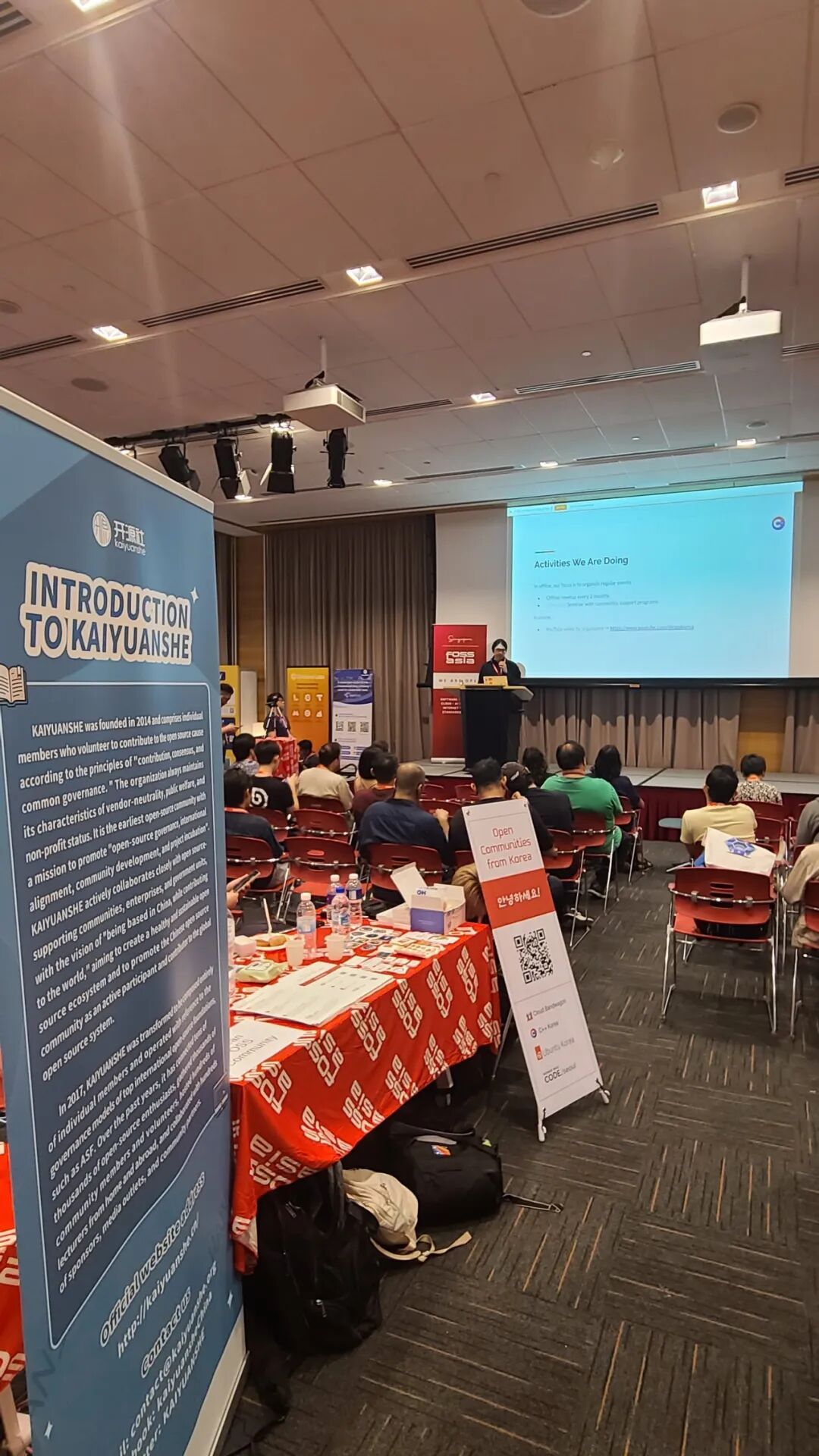 开源社展位就在韩国的开源社区展位隔壁。韩国的开源小伙伴们精力充沛而且英语流畅,令人印象深刻。