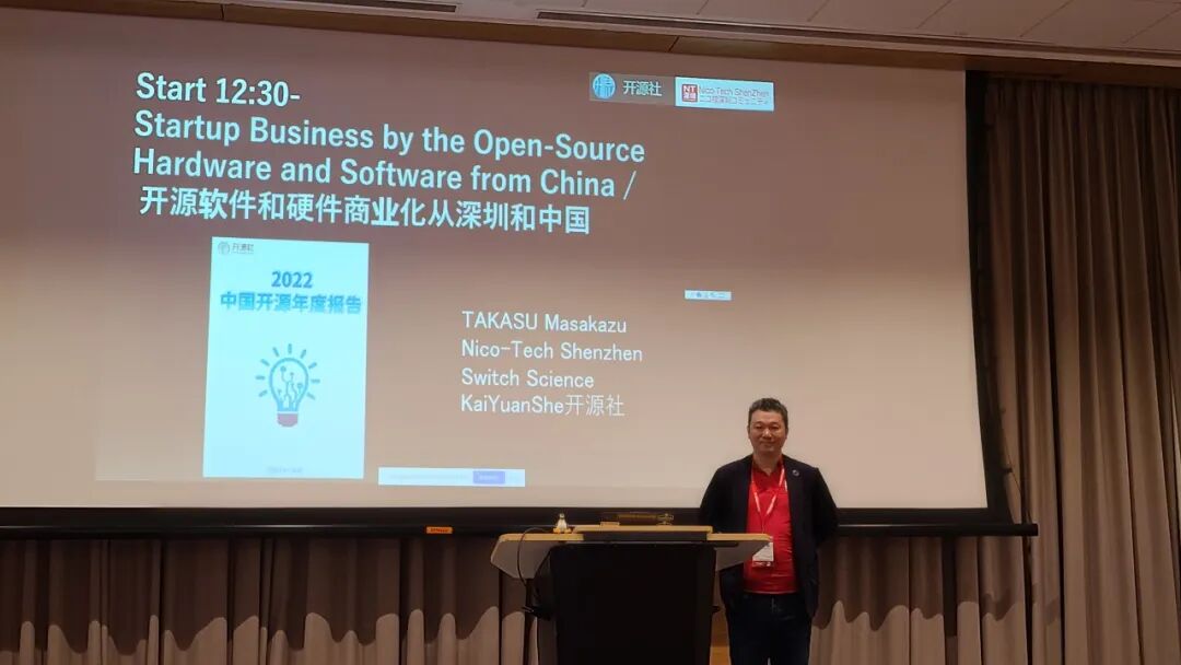开源社正式成员高须正君介绍了开源社以及 “中国的开源软件和硬件商业化”,他精彩的演讲里大幅地引用了 ”2022 中国开源年度报告”(中国开源年度报告 )。