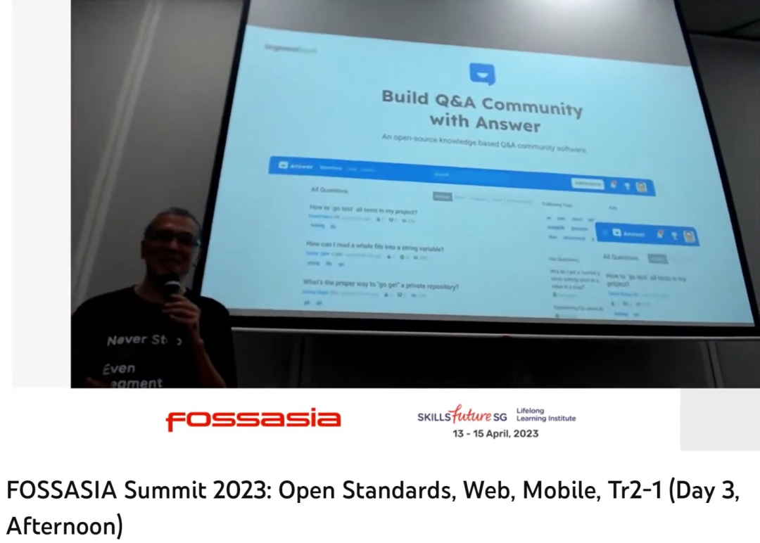 2023 年 4 月 12 日,我出发前往新加坡参加 2023 FOSSASIA Summit。这次参会,我主要是代表思否(SegmentFault)向亚洲/全球的开源社区伙伴介绍 Answer(一款问答形式的知识社区开源软件,用来快速构建你的产品技术社区、客户支持社区、用户社区等:https://answer.dev/),顺便介绍了开源雨林社区,同时我也在展区里代表开源社与观众们互动。