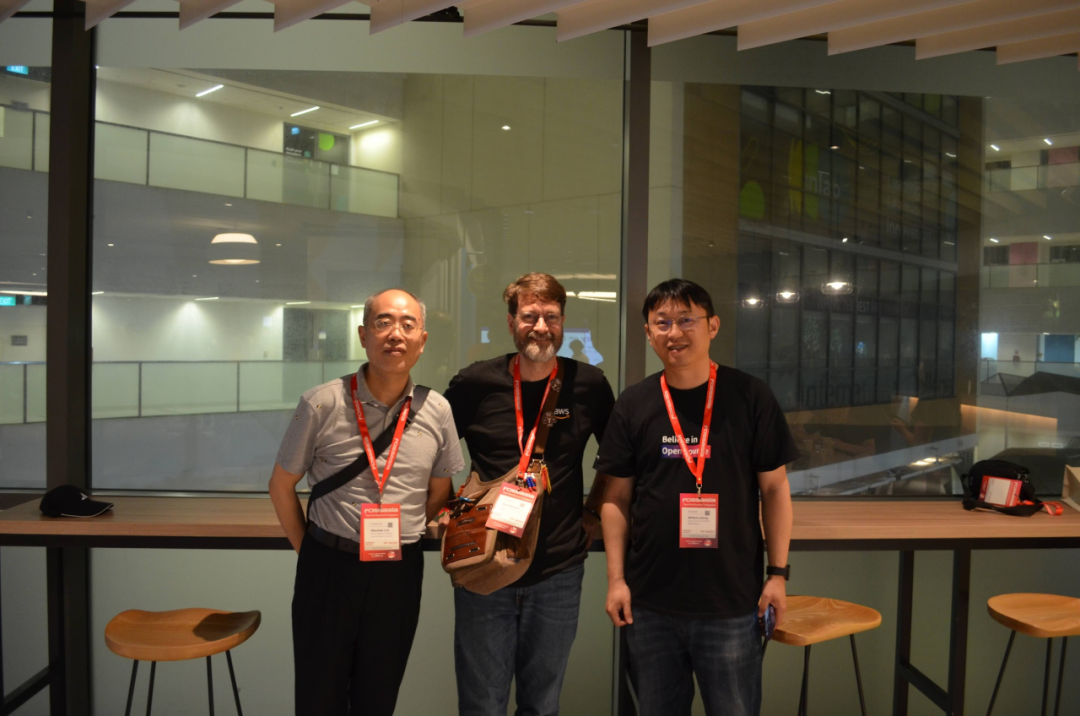 左起:王建民(openEuler 社区 committer,开源社新加坡城市社区创始成员)、闻其详(开源社长期好友)、陈奕熹 (台湾清华大学毕业生)、刘文涛、Hong Phuc Dang(FOSSASIA Summit 创始人)、姜宁(ASF 董事、开源社正式成员及顾问委员会成员)、舒敏(开源社正式成员、开源社新加坡城市社区创始成员)、陈东辉(openEuler 社区)、卢晓景(openEuler 社区)