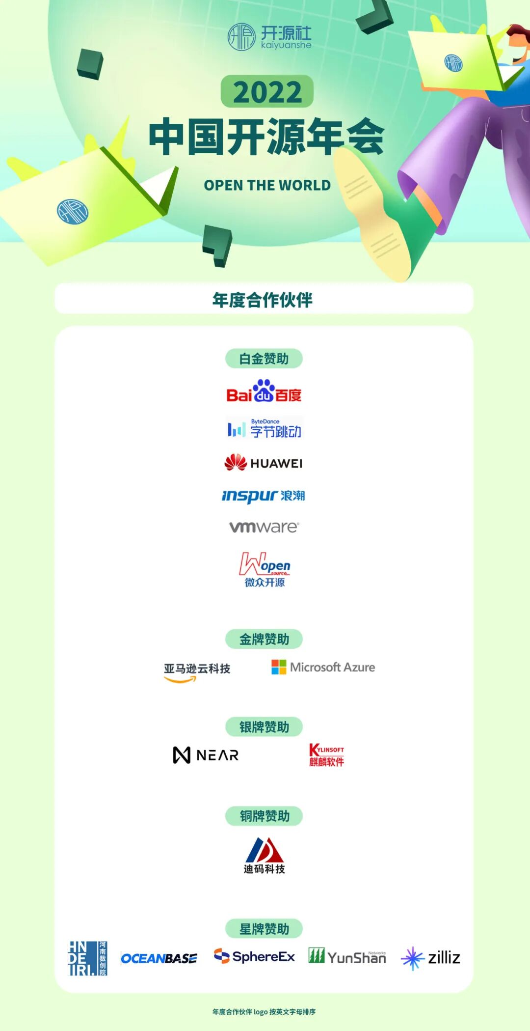 在 COSCon'22 中国开源年会上,我们也为大家策划了多个环节,帮助大家更好地了解开源社背后的故事 —— 开源社理事会将为大家带来圆桌讨论「十字路口,开源社的愿景与思考」,中国开源先锋榜的开源领袖们将与大家分享他们在社区与商业的探索,中国开源码力榜的上榜 HACK HEROES 将和大家分享自己参与开源的故事。中国开源年度报告的预览,和中国开源社区地图、开放黑客松、KToken也将在主论坛上发布,开源社理事长陈阳还将和大家一起回顾刚刚收官的开源训练营,带你全方位了解开源社。